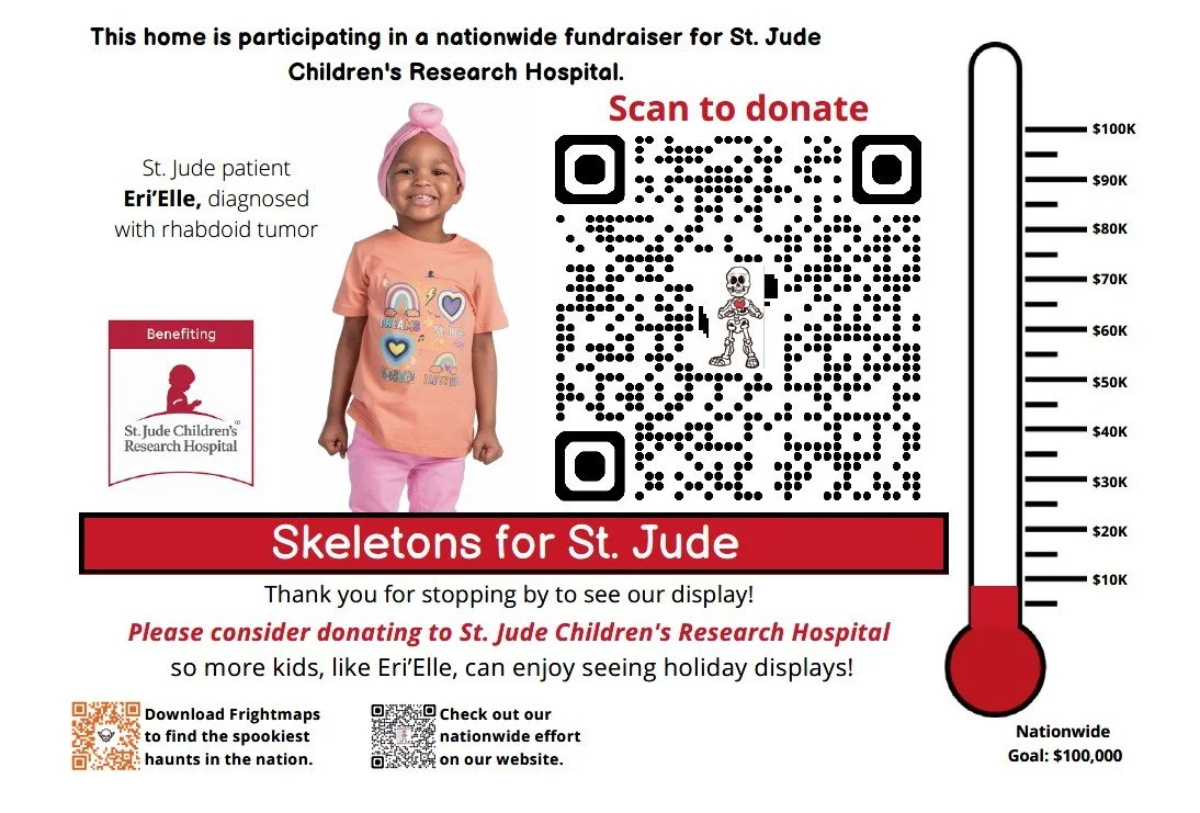 Our haunt is participating in Skeletons for St. Jude! Scan the QR code to donate❤️ Read more about Skeletons for St. Jude